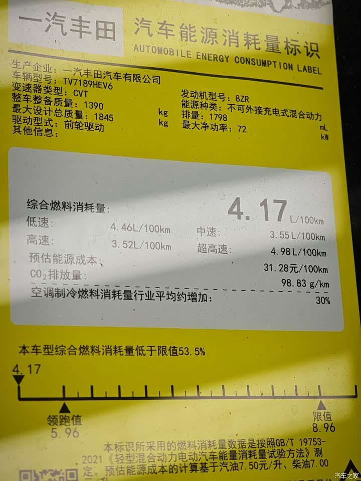 续航方面卡罗拉本来就主打一个家用性价比路线,而且搭载的1.8l智能电混双擎系统技术也成熟可靠,动力输出平顺,这让其燃油经济性非常高,而且只需要加92号汽油,官方数据显示综合油耗低至4.17L/100km左右,满油状态下综合续航应该轻松超过1000公里,综合性价比拉满。