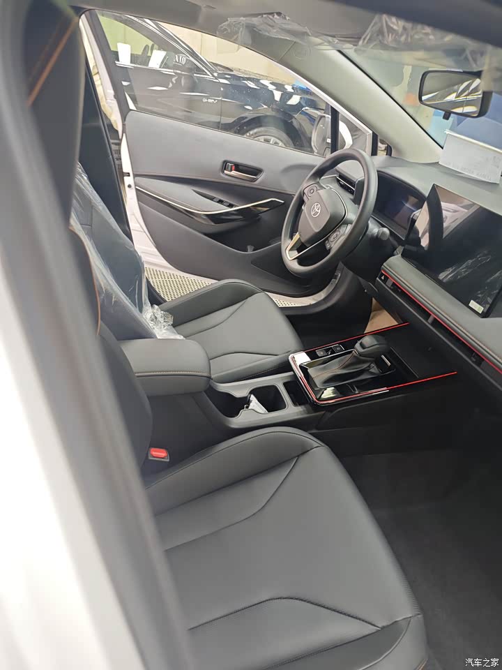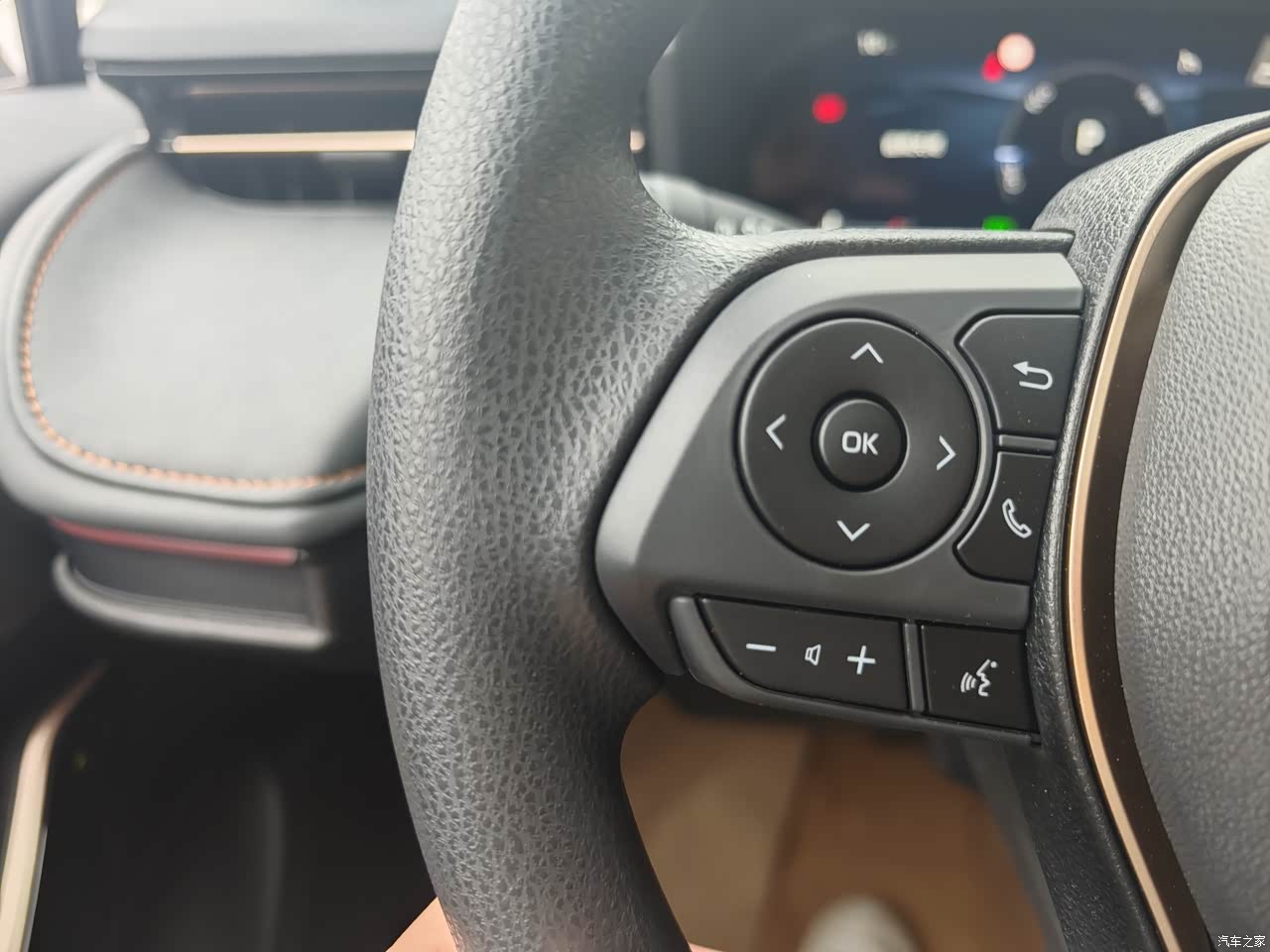 26款卡罗拉的内饰设计就是车内经常接触的区域基本都采用了软质材料包裹,如门把手,中控台,这些地方,中控台采用双层横向线条设计,搭配悬浮式中控屏,视觉上显得更加宽敞一些。 仪表盘升级成了液晶仪表,精英版的是8.8英寸仪表盘+12.9英寸中控屏组合,同时搭配智能车机系统,升级干还是不错的。 多色氛围灯也算是为内饰增添了不少科技感,可根据驾驶模式或个人喜好自由切换颜色,夜间行驶时能营造出温馨舒适的座舱氛围。 内饰的短板就是塑料方向盘,无论是入门版还是中配车型,方向盘都采用硬塑料材质包裹,触感偏硬且缺乏质感,确实显得有些掉档次,真皮方向盘仅在顶配旗舰版上才会有。