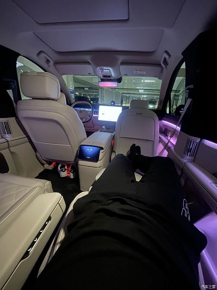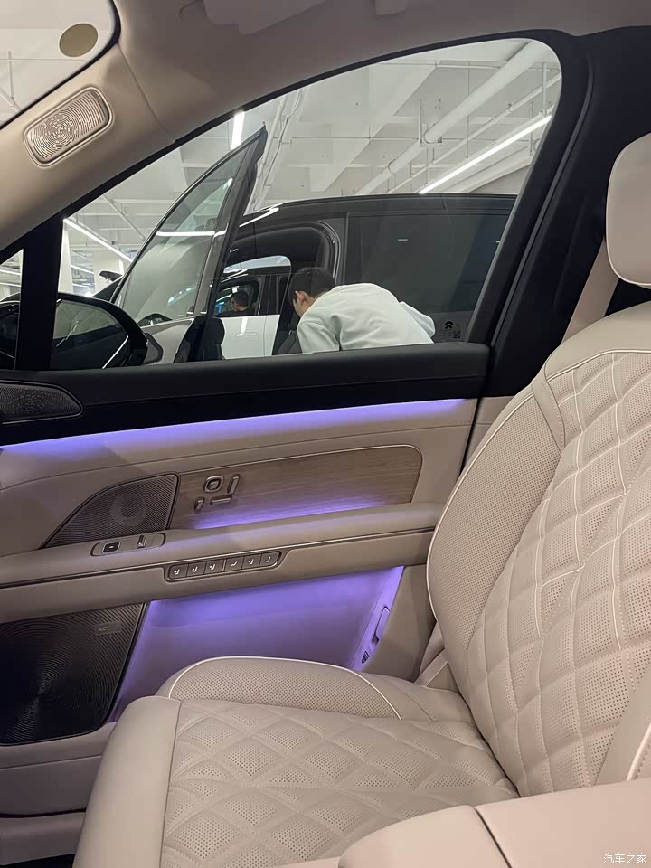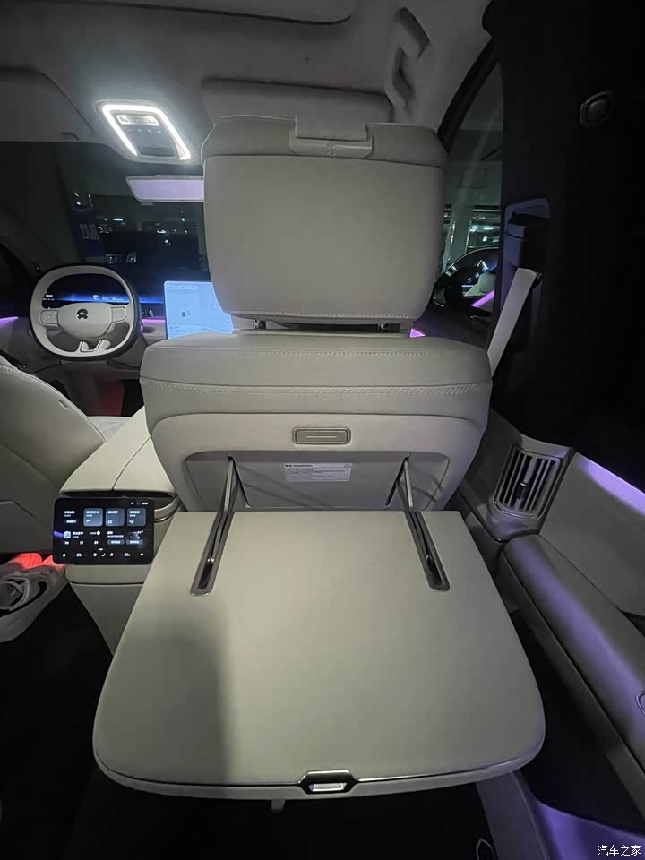 最满意:智能调光玻璃和投影大灯这俩配置。以前觉得这些是噱头,实际用下来才发现是真香。大中午太阳最毒的时候,调光玻璃一键变黑,隔热效果立竿见影,而且车里特别私密,完全不需要挂那种土掉渣的遮阳帘,整个车厢看着极度清爽高级。还有那个HDPL大灯,回老家跑没路灯的国道,它直接能在路面上铺一条光毯,还能把导航指引投射在地上。 最不满意:费电&难停。市区拥堵或者高速顶着限速跑,电耗轻松飙到24往上。其次是这车接近2米的车宽,在很多老旧商场的窄车位或者机械车位简直是噩梦,雷达从进库就开始尖叫,每次停车都得盯着全景影像蹭着边进。还有一点就是极夜黑漆面真的太娇贵了,稍微有点灰就显脏,不想全是太阳纹就得勤洗车。 【外观】 极夜黑绝对是ES8的本命色,虽然我知道黑色车漆是出了名的难伺候,提车这几个月我已经成了洗车店的超级VIP,稍微沾点灰就显脏,太阳纹也明显。但只要你把它洗干净,晚上停在路灯下,那种流光感,很好看。而且我个人不太喜欢那种花里胡哨的改装,原厂这个签名版专属设计套装,在B柱上的那点小标识,低调又能满足一点虚荣心,刚刚好。 【内饰】 首先是这个智能调光隐私车窗。刚开始我也纠结要不要贴膜,后来发现有了这玩意儿根本不需要。大中午太阳最毒的时候,你在中控屏上一点,玻璃瞬间变黑,外面的热浪和刺眼的光全被隔绝了,而且它不是那种傻黑,是能根据光线自动调节透光率的,在里面能看清外面,外面看不见里面。最爽的是中午我在公司楼下车里午休,或者带客户在车里聊点事,玻璃一黑,私密性无敌,还不用像以前那样挂个土掉渣的遮阳帘,整个车厢看起来特别清爽高级。 再就是那个后视镜。对于咱们这种六座大车,这绝对是刚需。以前开SUV,只要后排坐满人,或者后备箱堆高点,内后视镜基本就废了。现在不管后面坐多少人,也不管外面是下暴雨还是黑夜,看后视镜永远是高清直播,视野范围比玻璃的大得多。 这车还配备了电动开合智能冰箱,但设计得非常巧妙,没有把中间堵死,而是保留了大概18公分的过道去后排比较方便,不用下车绕来绕去的,照顾小孩很顺手。 然后是这个零重力座椅。除了副驾女王座,二排的两个独立座椅也能一键零重力。二排那个零重力模式开启后,整个人是悬浮状态的,对于跑长途的老人来说,腰背真的舒服太多。 天空屏的显示效果也是绝了,黑的地方特别黑,色彩特别艳。现在接孩子放学,如果我到早了,就自己坐在后排,放个4K电影。孩子上车后第一件事也是喊NOMI打开天空屏看动画片。 【空间】 我身高1米8,把二排调到我膝盖有一拳距离的位置,我坐进三排居然还能有三指的腿部空间。虽然坐垫高度不如前排,但它的靠背角度是电动可调的,稍微往后一躺,短途坐两个小时完全没问题。平时这一排就是我儿子的专属游戏房,配合那个侧窗遮阳帘,私密性很好。 六座满员状态下,它能刚好塞进一个24寸行李箱加两个孩子的滑步车,满足周末郊游没问题。一旦把第三排电动放倒,那简直就是个大平层。前段时间帮朋友搬家,放倒三排后,连那种带包装的洗碗机都能直接塞进去。而且它后备箱盖板下面还有个巨大的隐藏储物格,我平时把随车的充气泵、露营用的折叠椅全扔里面,上面看着干干净净。 得益于没有遮挡的全景天幕,加上浅色内饰的烘托,坐在车里任何一个位置都没有那种顶头的压迫感。 【智能化】 重点要吹一下这个智能高清投影大灯,提车前我觉得这玩意儿就是个噱头,提车后真香。回老家走没路灯的国道,这车能直接在路面上给你铺一条光毯,帅的一。最神的是它能把导航信息投在地上,转弯的时候还会画出一条引导线,有时候我想变道,它还能在旁边车道投射警示光,防止后车追尾。还有那个ADB矩阵远光,反应巨快,会车的时候自动把对面车那一块抠黑,既不晃人眼又能照亮路牌。