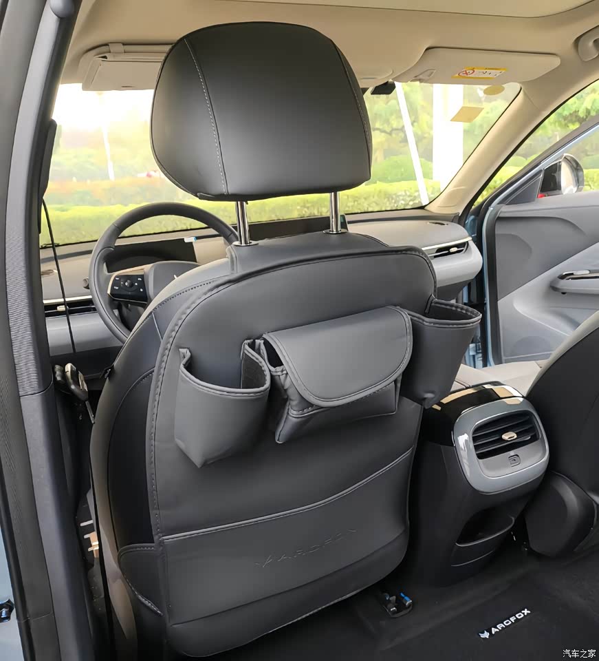 车内的收纳设计也特别有意思,中控台下方的空位,正好放我媳妇的大包。主驾座椅侧面还有带排水孔的雨伞槽,再也不怕湿雨伞弄湿车里了。据说全车有32处收纳空间,我是没数过,看着是挺多,手机、钥匙这些小物件,随手就能找到地方放,前排座椅还能完全放平,形成1.6米的长空间,出去玩累了,直接躺上面休息,秒变临时大床。再加上外放电功能,接个咖啡机煮咖啡,或者搞个户外烧烤,实用性直接拉满!