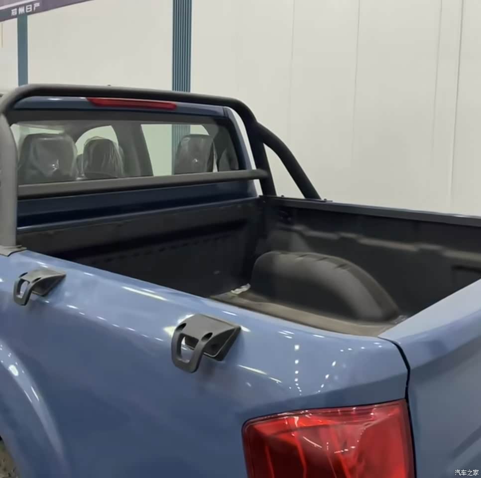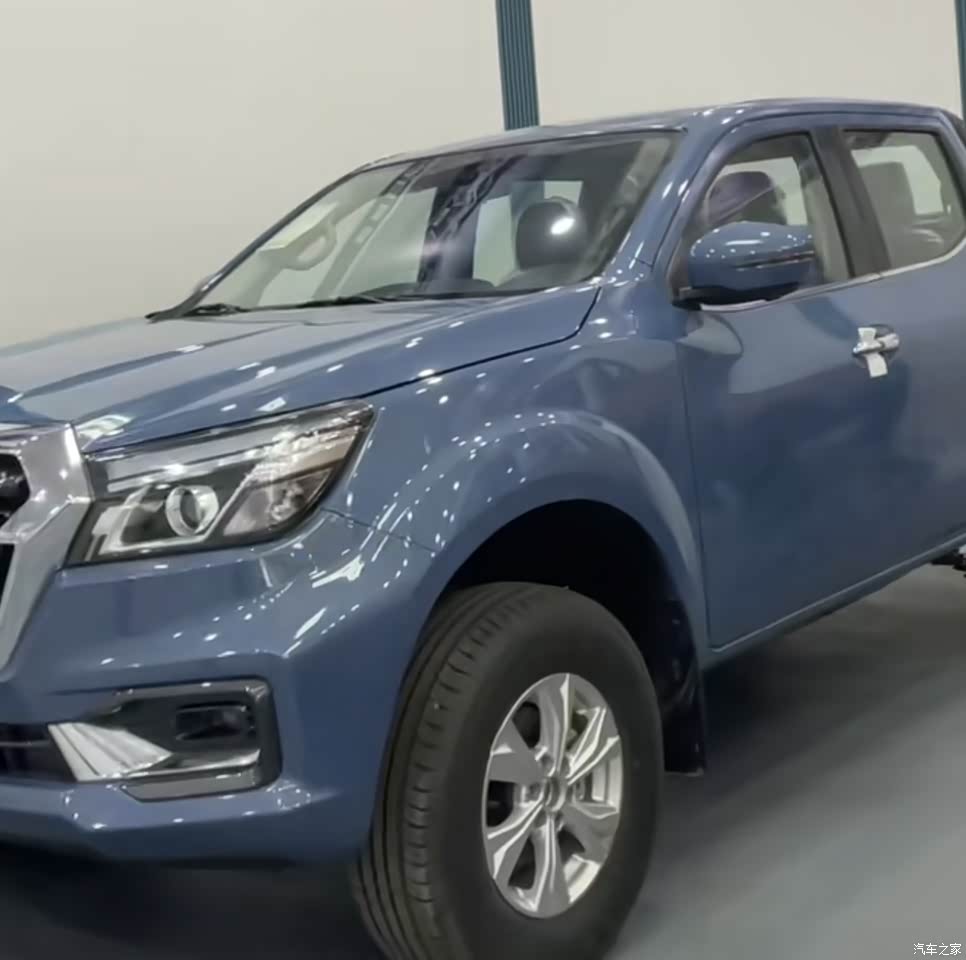 硬派皮卡造型,前脸镀铬饰条和鹰眼大灯,辨识度高。车漆挺厚的,轻微刮蹭不用补漆,工地跑烂路不心疼。