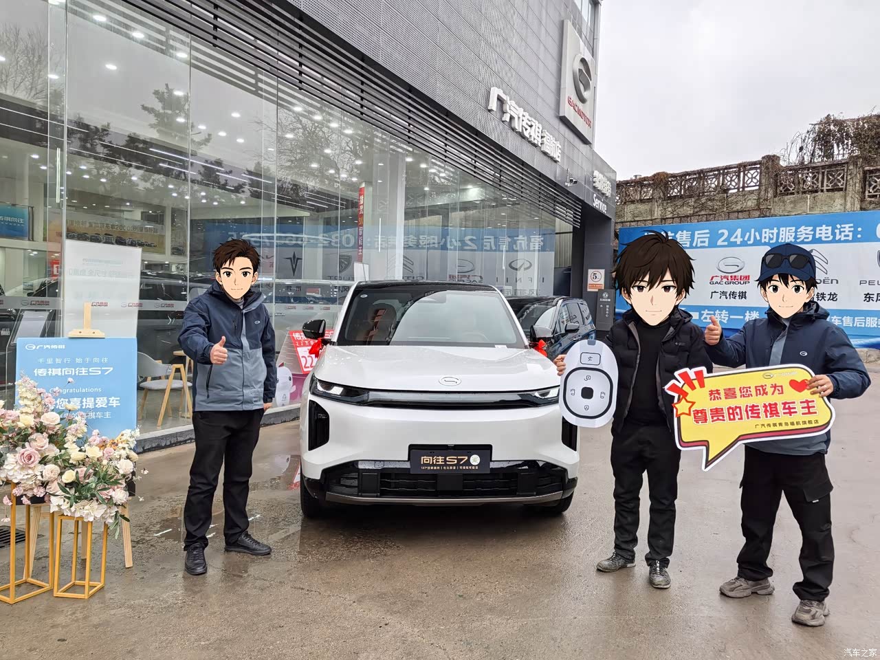 等了小半个月,今天终于把我的传祺向往S7接回家啦!虽然天公不作美下着小雨,但4S店的仪式感直接拉满,必须来论坛记录下这开心的时刻~ ✅ 提车现场:仪式感给足了 到店的时候销售大哥已经把车停在门口,还布置了花束、专属手牌,连“恭喜提车”的立牌都安排上 ,很给力。