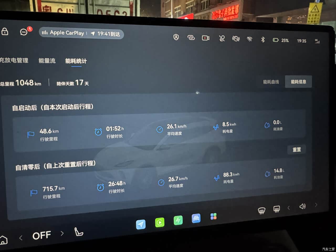 电耗大致在16,油耗用得多应该在7,用得少起码8个油 比较无法接受的事是,油电系统同时计算保养,不知道首保以后会不会变,但这样真的难以接受