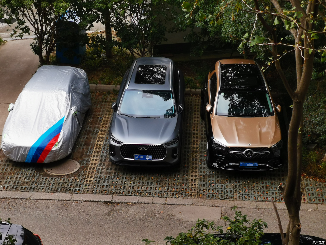 这张就有感觉了吧,右边是GLE,左边原来是辆Q5,车子尺寸跟GLE相当,比Q5大。