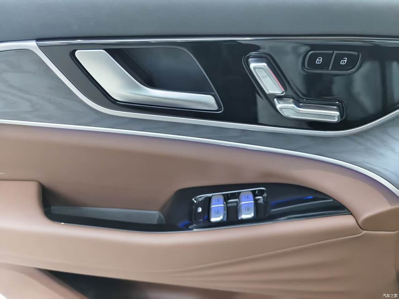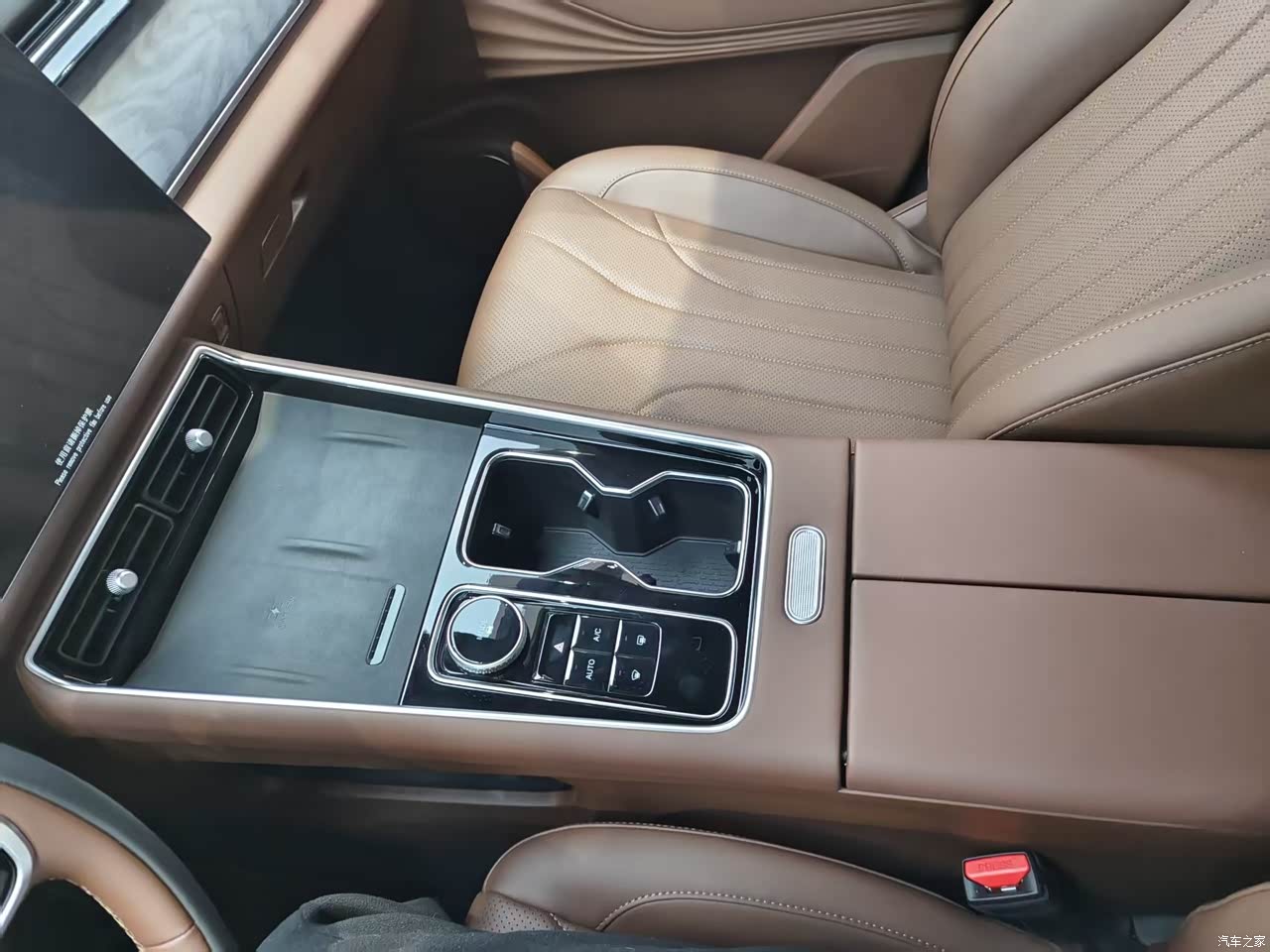 黑棕色为主调的座舱简约耐看,怀挡设计节省出丰富储物空间,中控台能同时容纳双水杯和双手机。高通骁龙8155芯片加持,车机启动快、操作无卡顿,多色氛围灯提升氛围感。