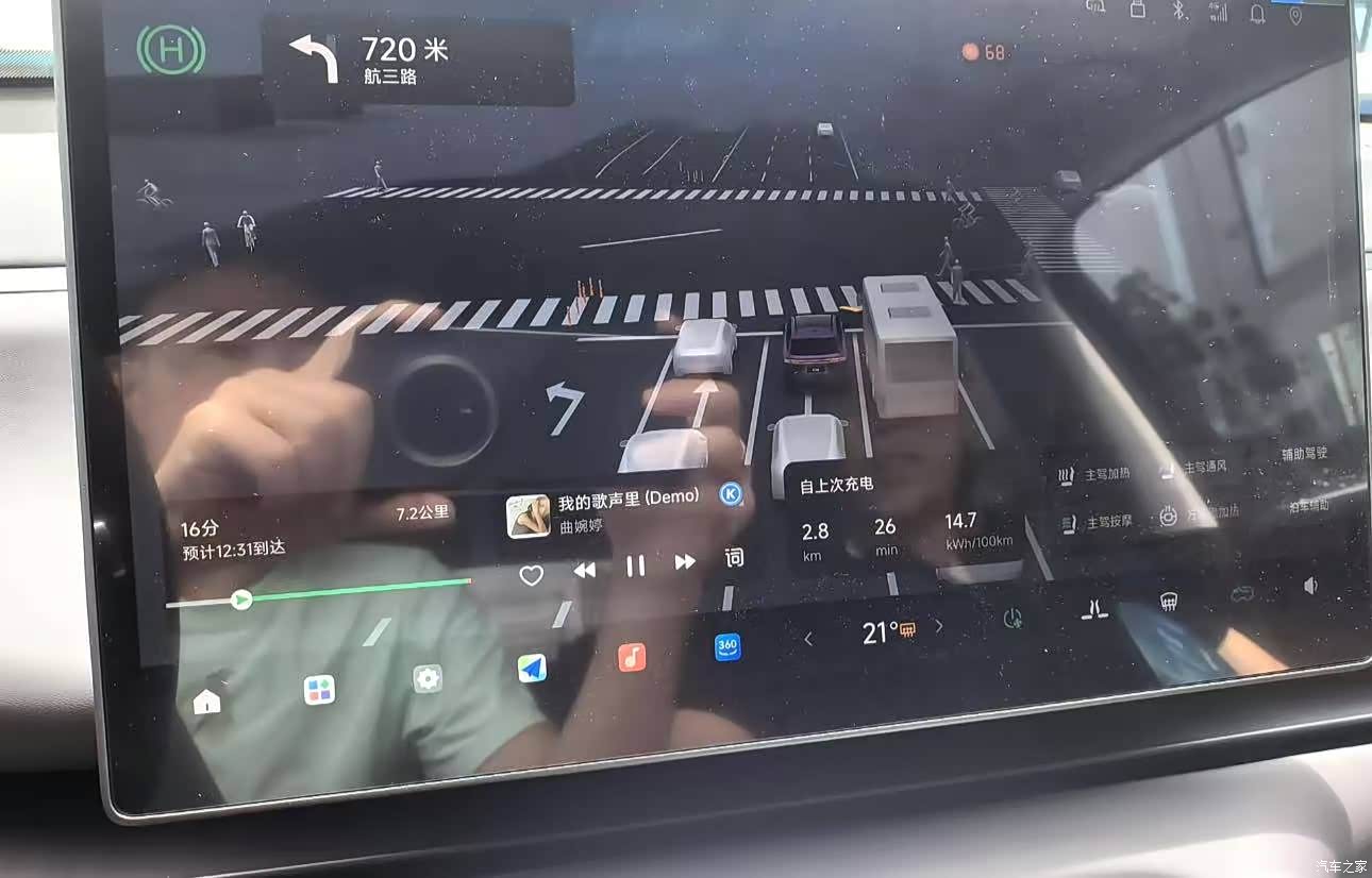 芯片让车机系统非常流畅,大屏幕导航界面清晰。手机无线充电、公司楼下快充桩补电,喝杯咖啡的功夫电量就能恢复很多。L2级别的智能驾驶辅助在快速路和高速上非常好用,能大幅减轻长途驾驶的疲劳。