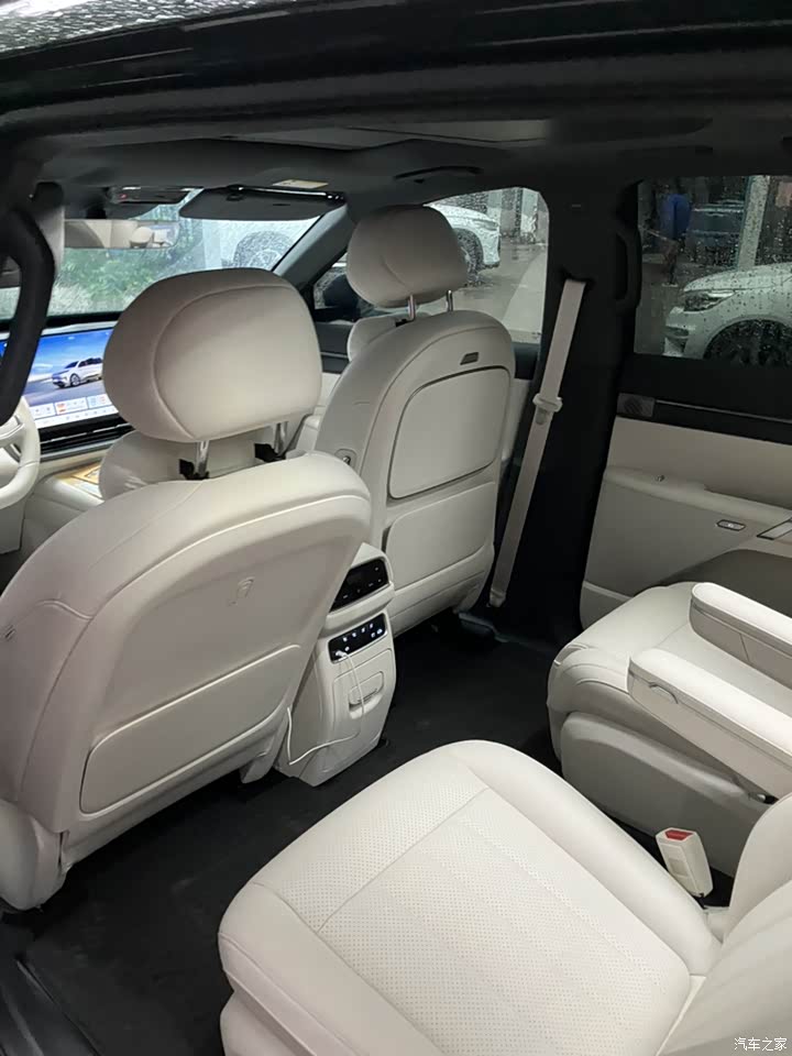 空间 空间是它的主打,轴距三零二五都落在舱内,第二排两个独立座椅带扶手,前后调节幅度大,靠背能躺,还配加热通风,调到我习惯的位置后,第三排坐成年人没问题,第三排的坐垫高度和长度都够,不像小板凳,头顶那块也掏出来了一点,储物点我数了下全车二十二处,门板的杯架可以直接放进大保温杯,不会晃,副驾没有手套箱这件事用起来能感觉到,行驶证还有随车工具就只能放到门板或者中控的下方,六座全开的时候尾厢空间不大,两个登机箱能平放,第三排电动放倒,需要的时候一键平整。