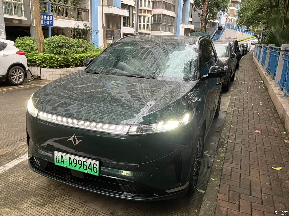 外形我挑的就是仙踪绿,这个色销售说是新增,能免选装费,我看实车那天光线很好,这个绿不鲜艳偏灰,太阳下泛一点金属光,车身是方的,腰线简单,隐藏门把手和贯穿式尾灯都有,五米出头的长度,从侧面看很长,停在停车场一排车里不会显小,像个认真做家用的车,没有复杂的装饰,日常看久了也不累。