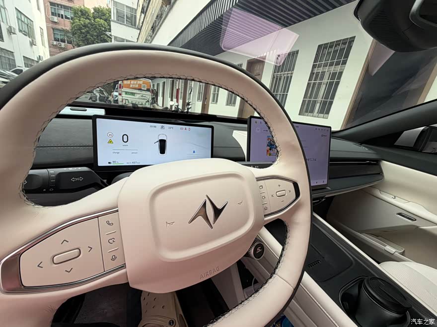 内饰我选米色,外观偏运动,车厢要暖一点,坐进去亮,视野开,像家里客厅,手能摸到的地方类麂皮和皮革包得足,这个价位算下功夫了,浅色不耐脏是老话,有娃的家庭准备湿巾就对了,中控那块大屏是视觉中心,黑边偏宽,UI看着普通点,好在保留了几个物理键,双闪、空调一摸就有,比全放屏里更顺手,新车味道控制得好,进去没刺鼻,环保这一块放心些,愿意勤打理的话,米色看着更有质感,坐着也舒服,黑色内饰的常见感少些。