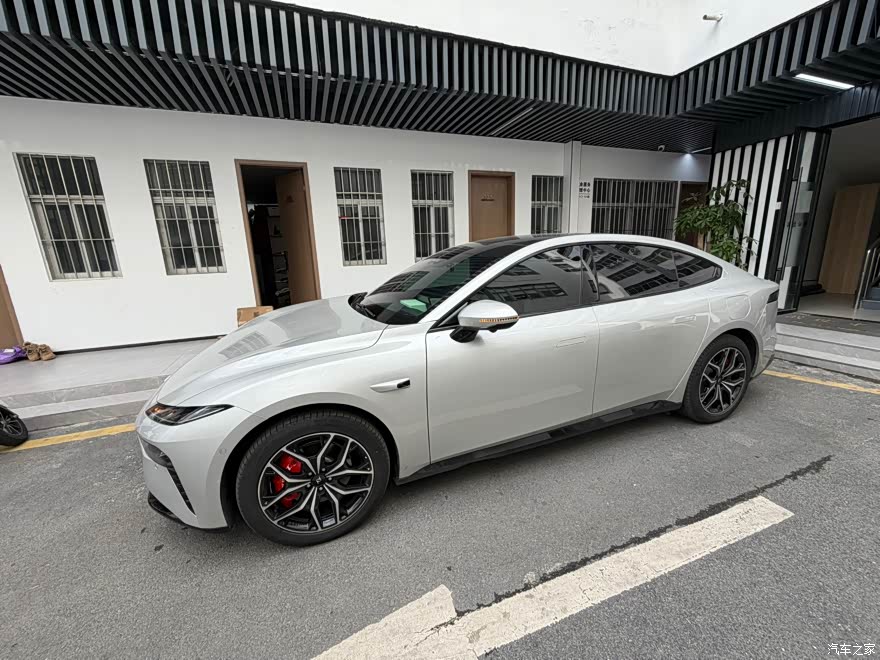 向阳金这个颜色挑的时候看着亮,提车一看更内敛,不是那种晃眼的金,太阳底下像香槟,阴影里往浅灰走,线条把姿态拉开,低趴宽体,溜背整个侧面很顺,在路上回头不少,我自己最爱两处,无框车门一开一合很有仪式,电动尾翼随速升降,七十往上会起一点,外观看着整齐,下压力也是真提供,灯组贯穿前后,晚上点亮辨识很清晰,尾灯箭羽造型,一眼能认到,新能源该有的科技味在,轿跑的那种优雅还留着,这个颜值我给高分。