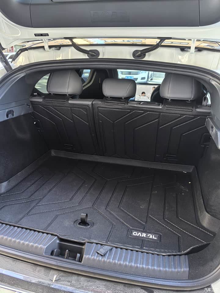 后备箱稍小,但是后排座椅放倒,大空间就出来了。能装载不少物品,之前小车上装载的小物件和雨伞等放在后备箱下沉空间内,刚好。前备箱异形未使用。