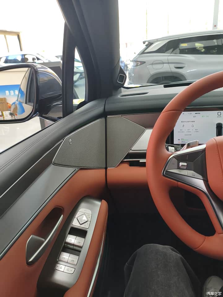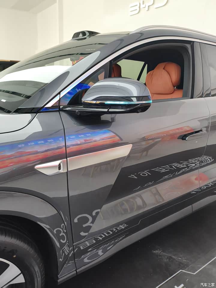 一坐进去,豪华感和科技感扑面而来。中控台用了竹木饰板和金属材质混搭,线条像中国古建筑的屋顶,很有设计感。能摸到的地方基本都是软性材质包裹,座椅皮质细腻,缝线工整,配上氛围灯,档次感比我的老唐强了不止一点。整体营造的氛围既温馨又有高级感,很对家庭用户的胃口。