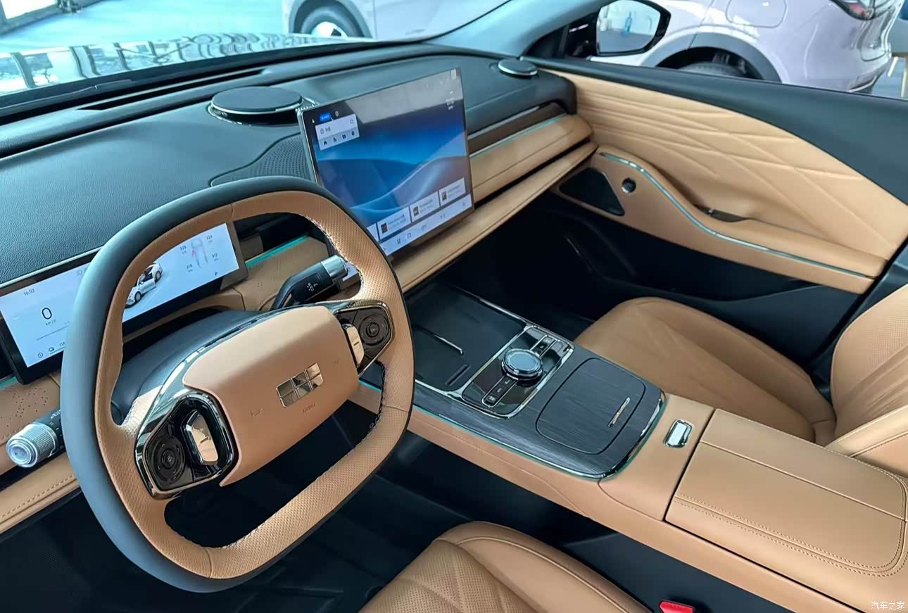 车内摸起来大多是软乎乎的材质,占比能到85%,还有麂皮顶棚,质感很足。15.4英寸的中控屏操作流畅,顶配还有AR-HUD抬头显示,不用低头看仪表盘。