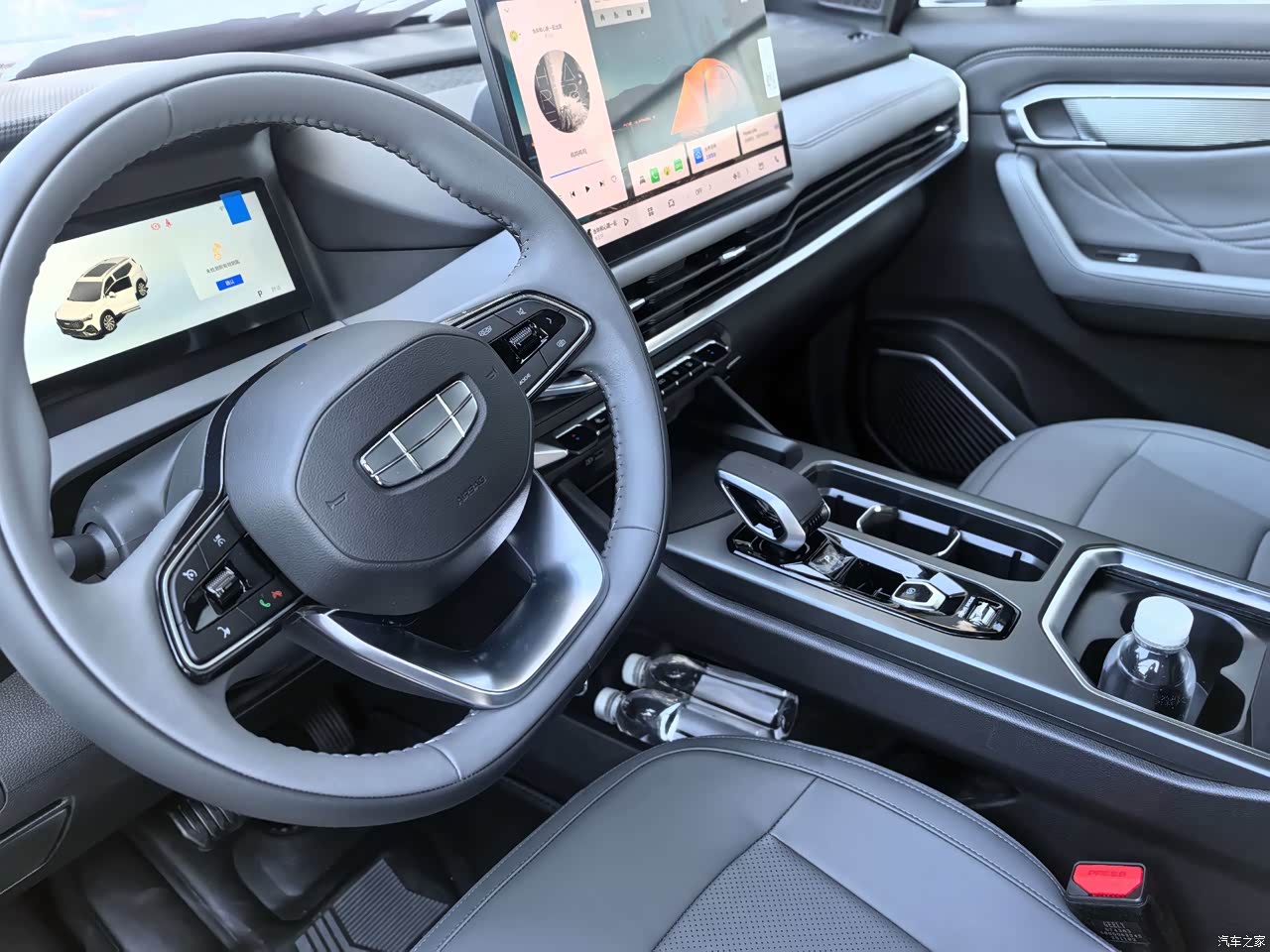 我觉得新款豪越l比较让人满意的有几个点,一个是外观还不错,比较大气,比较重要符合大多数人审美,然后是内饰的话,软包比较多,稍微有点档次,没有明显的塑料感。车机很流畅,很丝滑,能下载很多应用,自研的音响效果也不错。