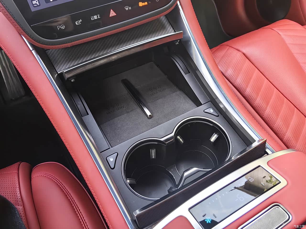 内饰太豪华了,单说内饰,材质、做工和氛围感都把控的很好,大面积的皮质和木饰,材质上已经拉满了。整体的设计也还是沿用了品牌的设计语言,做了微调,我很喜欢丹拿星旋这个音箱的设计,感觉每次上车看到音箱转起来就很治愈,音质就不用说了,丹拿顶级的铂金证据系列。四个座椅的加热、通风和按摩都是标配,这个价位就不说了,吐槽一下座椅按摩的力度是不是太小了点,感觉不是很强烈,真的可以考虑增强一下。冰箱也是标配,知冷知热都可以,有小孩儿的家庭肯定知道车载冰箱的重要性。