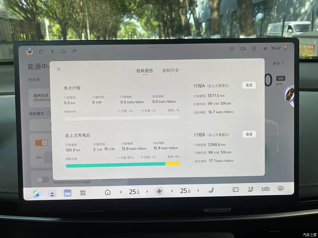 作为电车,大家最关心的肯定是续航和能耗。N7 625 Pro版标称续航625km,实际开下来,肯定达不到,但也没差太多,我觉得能接受。 我平时主要是上下班通勤,周末节假日会带着家人去广州周边玩。十一国庆黄金周去了汕尾红海湾,广州距离红海湾大概320公里,出发前,充满电表显续航625km,高速几乎顶着120码在跑,空调开到26度,到达目的地,平均电耗15左右,剩余续航还有130KM,差不多是标称的7-8折。如果不开空调,跑高速的话,续航应该能达到480km左右。这个表现我觉得还行,毕竟夏天空调耗电。