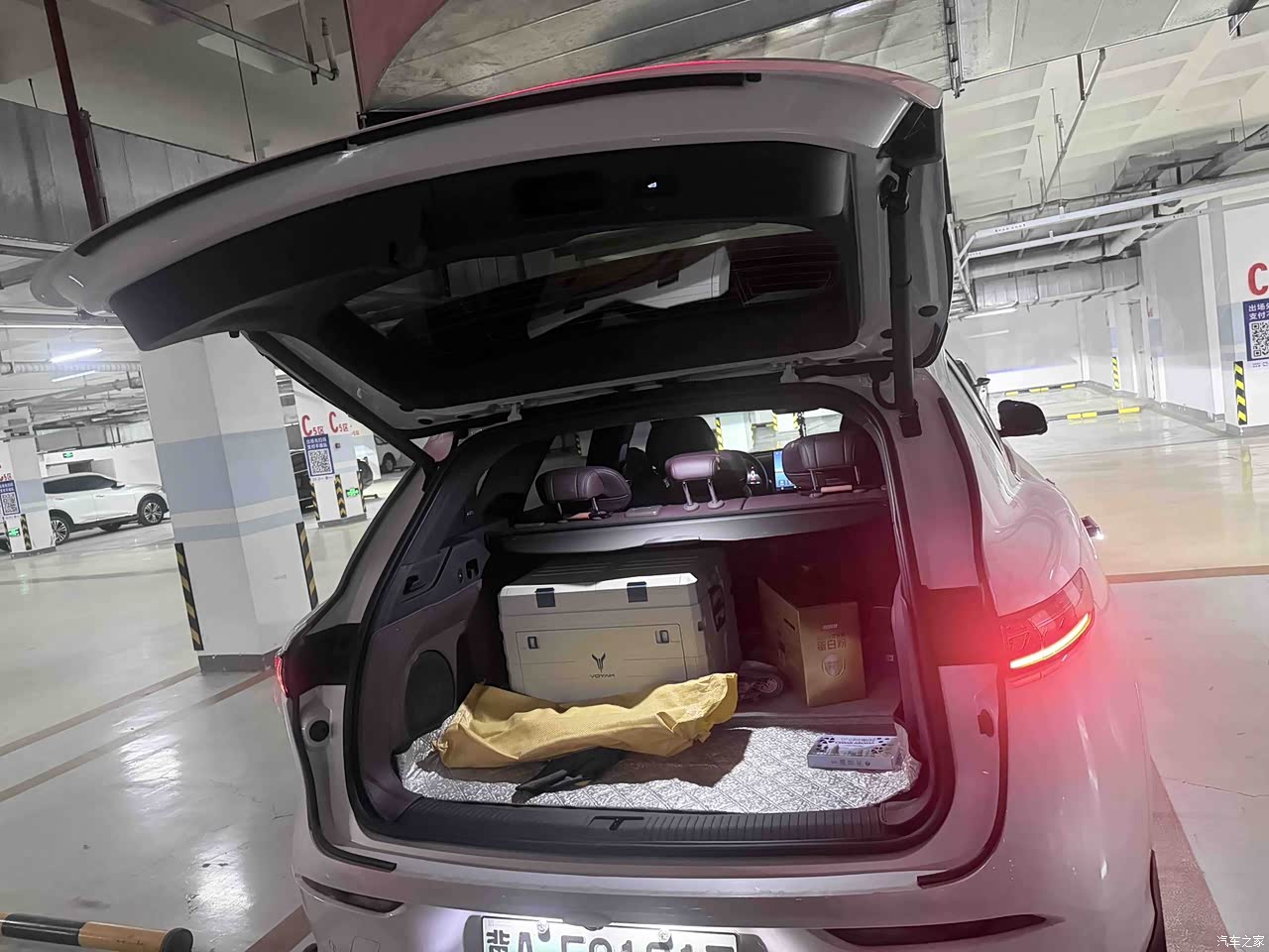 空间部分 反观旧车,岚图FREE+这点真的做的很棒啊。第一就是储物空间的扶手箱尺寸,特别的大,可以放入好几瓶矿泉水还有很多杂物,而且里面还有一个隔板,放东西更整洁了。然后是后备厢的规整程度,非常平整,侵占量很少,平时放两个28的拉杆箱完全没有问题,在放点零碎小东西也ok。周末带着家人的时候出来野餐,帐篷、椅子、这样的大件一样装的下,实用性真的非常高。