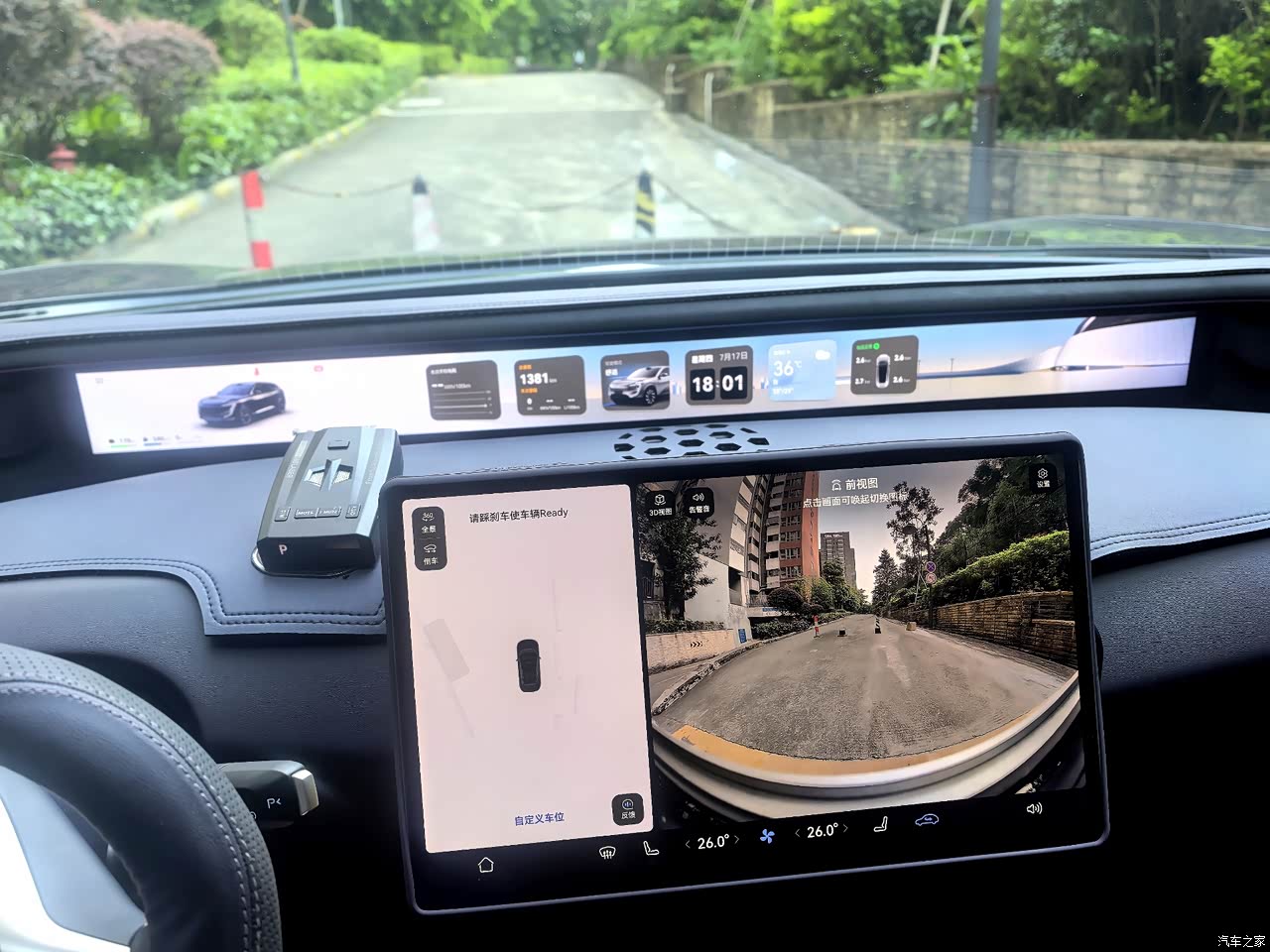 内饰用的皮质很棒,没有那种低廉的塑料感。尤其喜欢带鱼屏,可以自定义编排,显示清晰,一目了然。 开车门的按钮和隐藏式把手比较奇特,家人或朋友第1次坐我的车,都要教他们怎样打开车门才行。 车门上方没有传统的把手,上下车或遇到颠簸路面时,有些不方便。