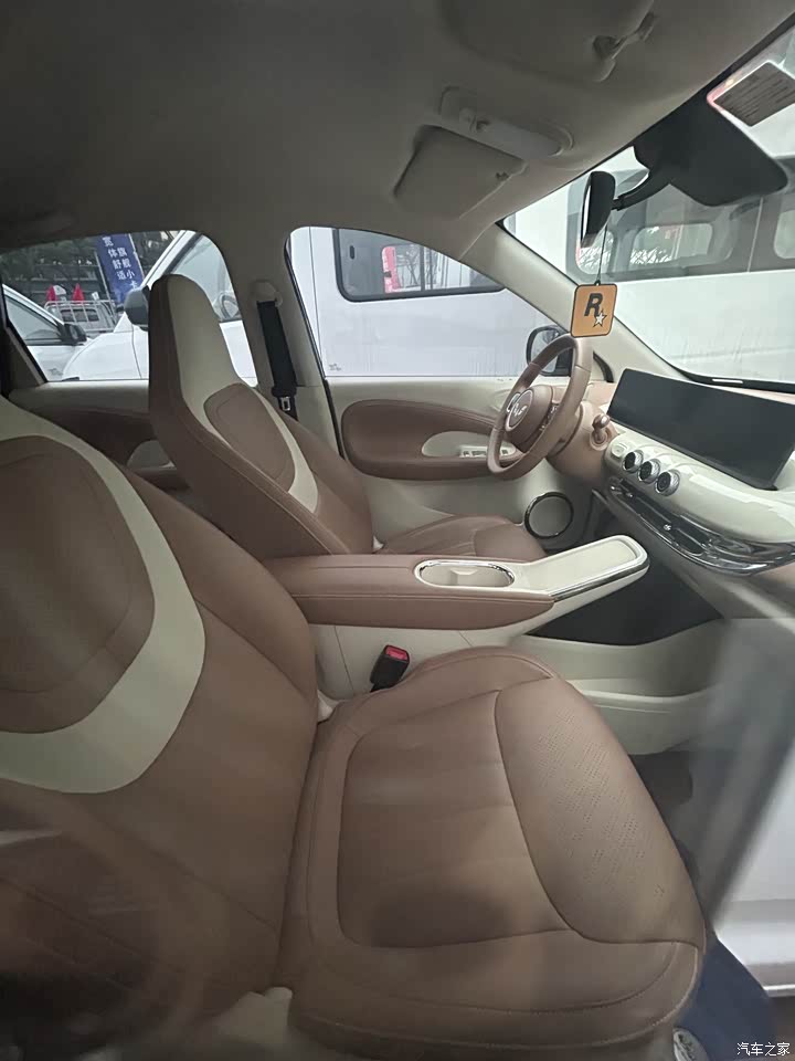 内饰暖乎乎的看着就舒服,很有精致感,完全没有廉价塑料感,坐进去就觉得放松,不像有些车内饰黑乎乎的,看着就压抑。搭配的双联中控屏大小刚好,操作也不复杂,我这种不太懂车的小白,摸两下就会用了。