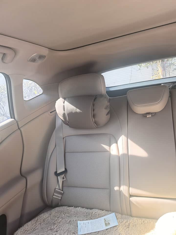 完全够用,甚至副驾靠前移,还能增加很多空间感。我身高170cm,坐在里面,头部仍有约一拳多余量,带娃一般习惯性打开遮阳帘,这样车内的通透感更好,还可以头上的环境。 后排腿部空间比我之前的沃尔沃宽敞多了,没有中间的突起,地台全平,左右移动毫无障碍。后排也可以调节角度,虽然实际幅度不大,但也是个小惊喜了。我一般场景都是带娃。所以后排空间对于娃来说是相当富裕的。两个大人+一个小宝,三人同乘时中间乘客也能获得舒适坐姿。