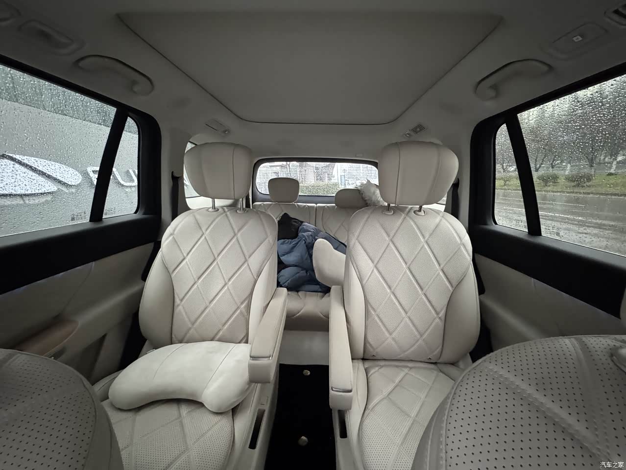 很多质疑的人都在强调第三排有台子,但是说实话这个台子坐过我车的人都觉得真没啥影响,长期坐的家人甚至很喜欢第三排的位置,在第一次评价的内容中已经提过了,再就是第三排座椅放倒,第二排座椅移动到最前方,加一个轿车用的“车床延长板”还是可以变成1.7m的“大床房”的,睡一个人斜着睡甚至能睡到1.8的大个子: