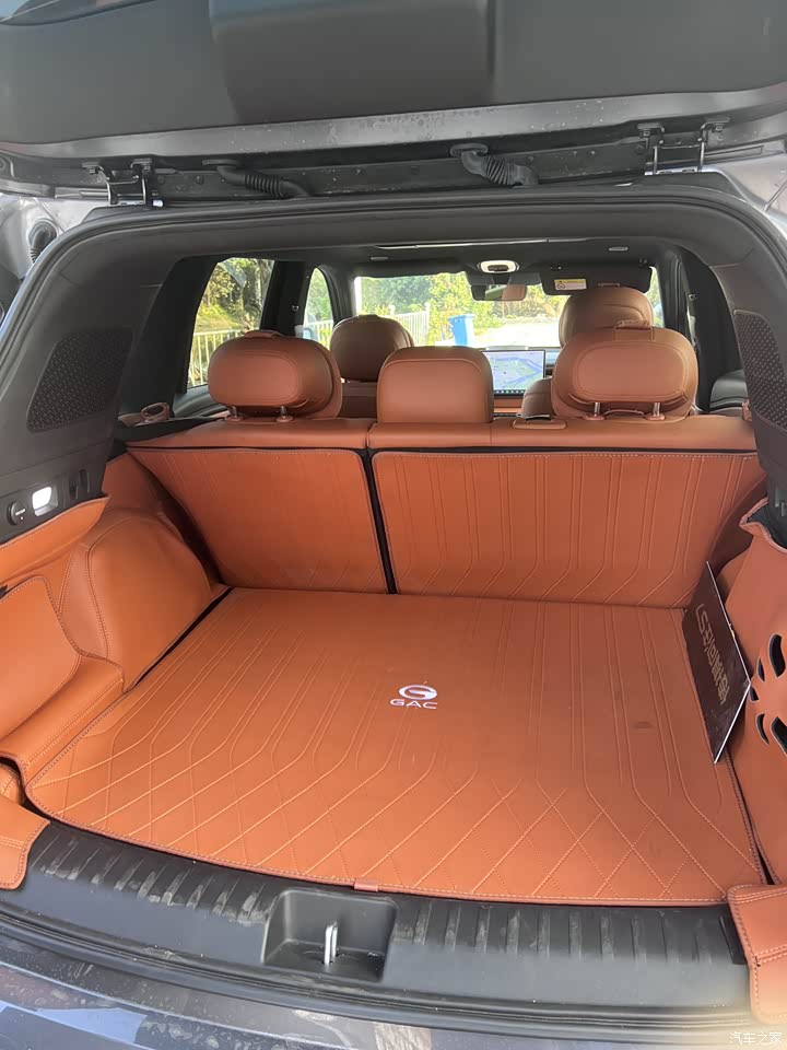 1.后备厢深不见底,婴儿车随便塞: 后备厢特别规整,底板还低,放大件行李不用费力举高。我感觉日常回家过年的年货或者露营的一堆装备(帐篷、折叠桌椅、收纳箱)全扔进去还有富余。后排座椅能一键电动放倒,放倒后几乎是全平的,我量过,躺两个成年人完全没问题,出去露营当个临时大床很实用。 2.到处都能摸到软包,储物格贼多:车里手能碰到的地方基本都是软的,很有档次。储物空间设计得很贴心,中控台下有个很大的镂空,我的包包可以直接放那儿。门板、扶手箱的容积也很大,矿泉水、抽纸、零食、湿巾各有各的地儿,车里再也不会乱糟糟。