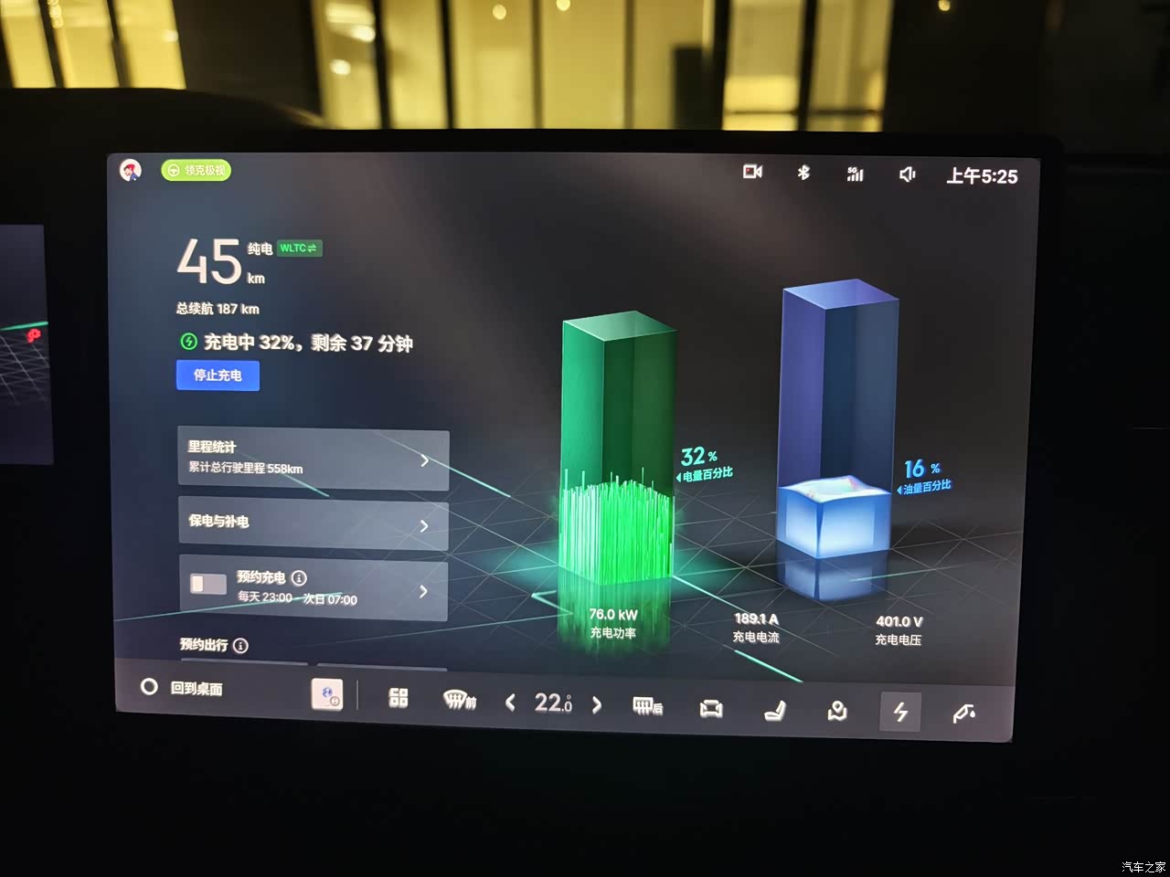 充电时间的话,在240kw的充电桩上实地测试的从20%到80%大概20分钟,到充满大概就是40分钟左右。从80%以后就进入涓流状态了就速度降下来了。400V的平台整体感觉速度还是比较快的!