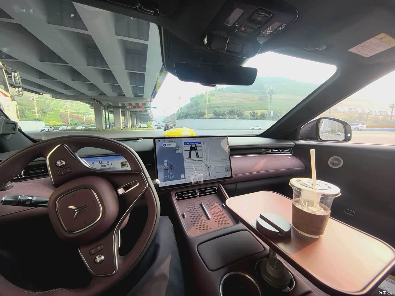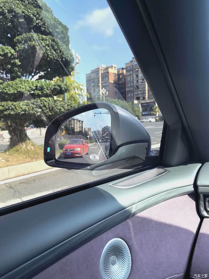 和外观呈现同色的紫色着实让我心动不已。其整体呈现出简约且豪华的风格,凡是能够触碰到的地方均采用软质材料精心包裹,摸上去手感颇为细腻柔滑,就连缝线也都整齐有序,从细节之处便能感受到十足的精致感。那中控屏镶嵌于紫色内饰当中,视觉呈现效果极为和谐统一。并且座椅还采用了皮质进行包裹处理,紫色座椅与浅色缝线相互搭配,瞬间将高级感拉至顶点。只是存在一个小瑕疵,中控的亮黑面板格外容易沾染指纹,需要时常进行擦拭清理,这一点确实有些许不便。