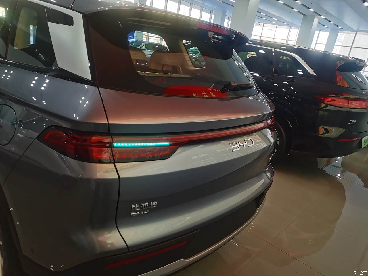 它的外观采用了比亚迪传统的龙颜美学外观,采用“龙鳞点阵格栅”设计,渐变式镀铬鳞片富有立体层次感,搭配两侧“龙须”造型LED日行灯,营造出蓄势待发的视觉效果。车尾采用“贯穿式点阵尾灯”,由128颗LED灯珠组成渐变光带,夜间点亮时效果醒目,横向视觉宽度也得到了提升。