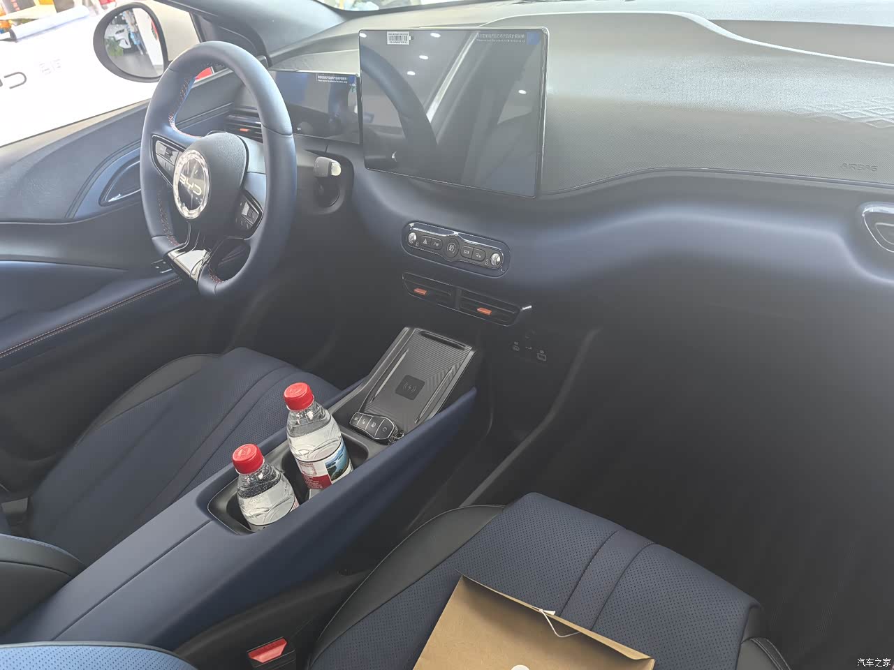 内饰是简约风,高配的12.8英寸大屏很抢眼。虽然摸上去硬塑料的地方不少,但价格不算贵