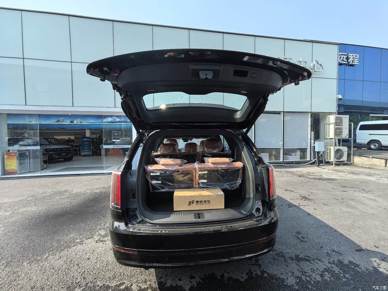 空间: 空间比较大,选的是7座,第三排显拥挤,如长途,第三坐小孩不错,如果坐成年人满员状态下适用于短途。 整体空间,2820mm轴距赋予充裕乘坐空间,二排座椅可前后滑动160mm,三排腿部空间在同级中表现上乘 。后备箱扩展性极强,放倒二、三排后能形成2.2米纵深的纯平空间,可容纳4个28寸行李箱+露营装备,隐藏式下沉储物格还能收纳充电枪等杂物 。1.1平方米全景可开启天窗提升车内通透感,平开门结构配合1930mm宽体车身,让乘客上下车更便捷,完全适配家庭通勤、长途自驾、户外露营等多元场景 。