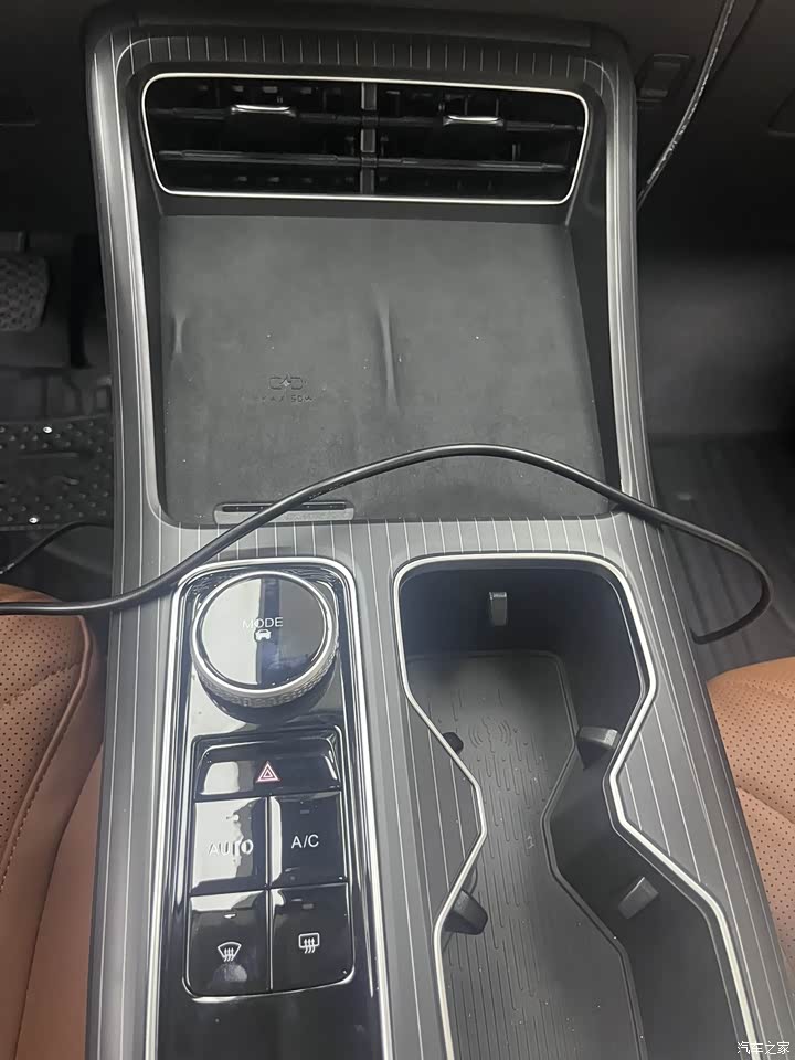 棕色内饰非常大气,我很喜欢,支持无线充电,手机没电的时候很方便,不用到处找充电器了