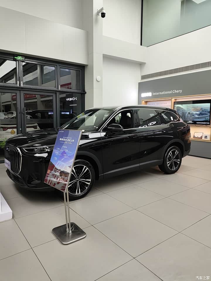 展厅里那辆黑色的(第1、2张图),往那儿一停,气场立马不一样了。车头那个大格栅,跟铠甲似的(你形容得真准),配上犀利的大灯,看着就精神、有劲儿,不呆板。侧面线条流畅,轮毂是黑银双色的(第5张图),样式挺运动,配上佳通的那个“advantech”轮胎,感觉抓地力应该不错。整个车看着挺大,但又不显笨重,属于那种“穿衣显瘦,脱衣有肉”的类型,家用够大气,自己开也不显老气。背景里“International Chery”和“中国新燃油”的牌子(第1张图),让人感觉奇瑞现在路子挺宽,既盯着国际市场,也在燃油车技术上搞新花样。