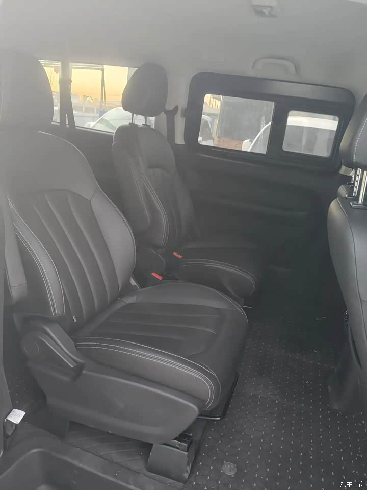 7座空间,对于我们自己出去玩,自驾游来说,把第三排的座椅放倒,挺好的,可以放很多东西,也可以有足够的空间,就算后期想要改装,那也是没有多少问题的,出去玩的时候就像个移动的小房子一样。我个子大概1.75左右,从侧门上下车的时候,没有什么拥挤感,坐到二排座椅上,腿脚也很舒展,很舒服,比面包车可强太多了。