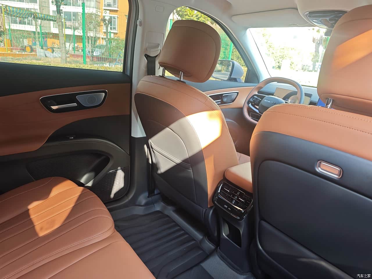 内饰方面,是偏向于新能源车但有没有新能源车 功能多,雅迪屏+大中控屏,没有实体按键。整体 的橘色内饰有种温馨感,但也不得不说亮面的烤 瓷容易沾指纹。