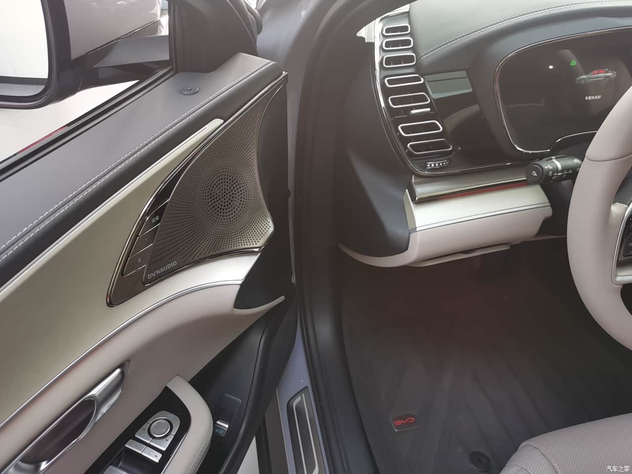 老款内饰采用大量软质材料包裹,搭配钢琴烤漆面板和金属饰条,整体看起来还是很协调的。不过新款的内饰有很大改动,取消了档把改奔驰款怀挡,高配的还带了冰箱。这台旧版的汉dmi如果你不介意的话还是可以入的,