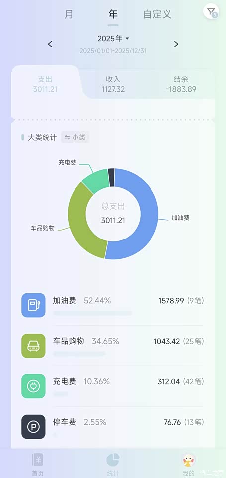 里程能耗5L ⭐⭐⭐⭐ 高速亏电能耗5L/百公里,日常亏电能耗5.75L/百公里。 高速数据计算依据(估算): 高速行车里程942.2公里,一共用了43升油。先用油全程亏电,后来中间充满1次电,返程高速途中先用完电后用油。(不开行车保电,智能模式) 估算得出满油满电状况下,高速油耗=43升油÷942.2公里=4.56升/百公里 估算得出亏电状况下,高速油耗=43升油÷(942.2-89)=5.04升/百公里 日常能耗计算市区路况数据计算依据(估算): 2025年9月(整个月未充电):用车里程1101公里(表显里程) 用(油):63.4升 每百公里油耗:5.75升(=63.4÷1101) 每公里经济支出:0.361元/公里