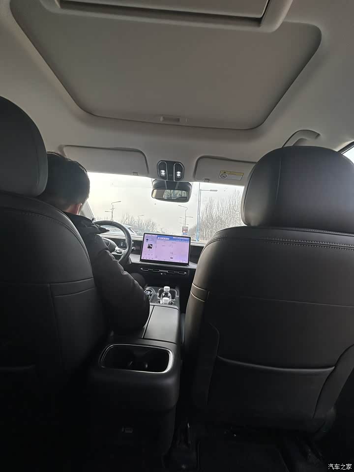 内饰还挺有格调的,这个杯子的位置正好在出风口,冬天喝温水夏天喝冷水,没有车载冰箱也能当车载冰箱用了,皮质座椅,还有个大屏导航听歌什么的一目了然。有L2智能驾驶辅助功能,试驾时没有怎么用。