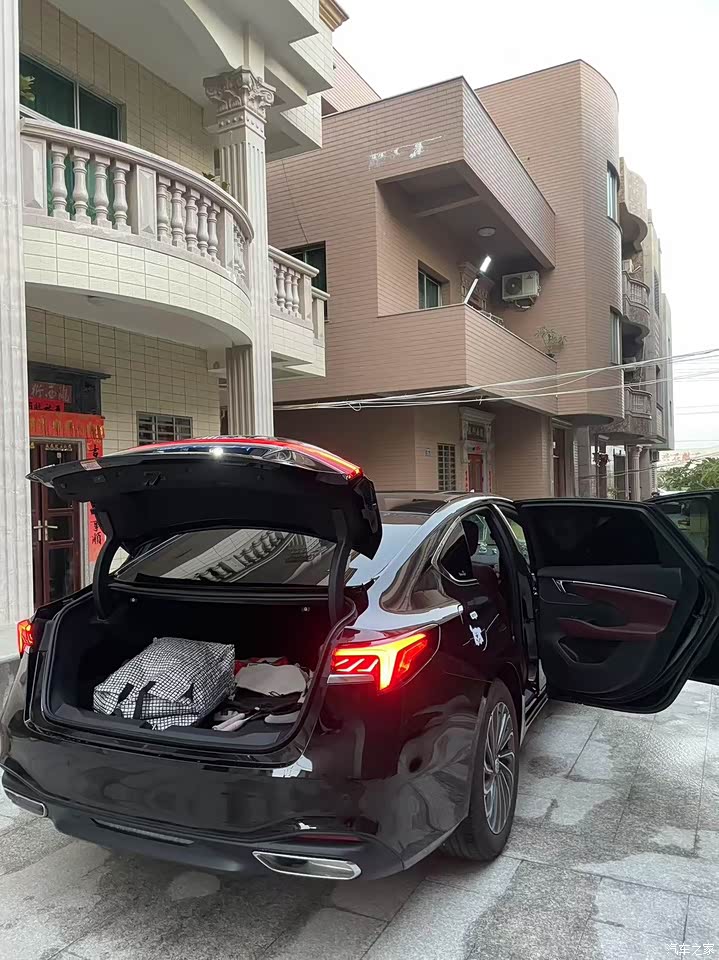 前后排都特别宽敞,我哥1米8坐后面也不顶腿。后备箱很深,一家人出门的行李随便放。
