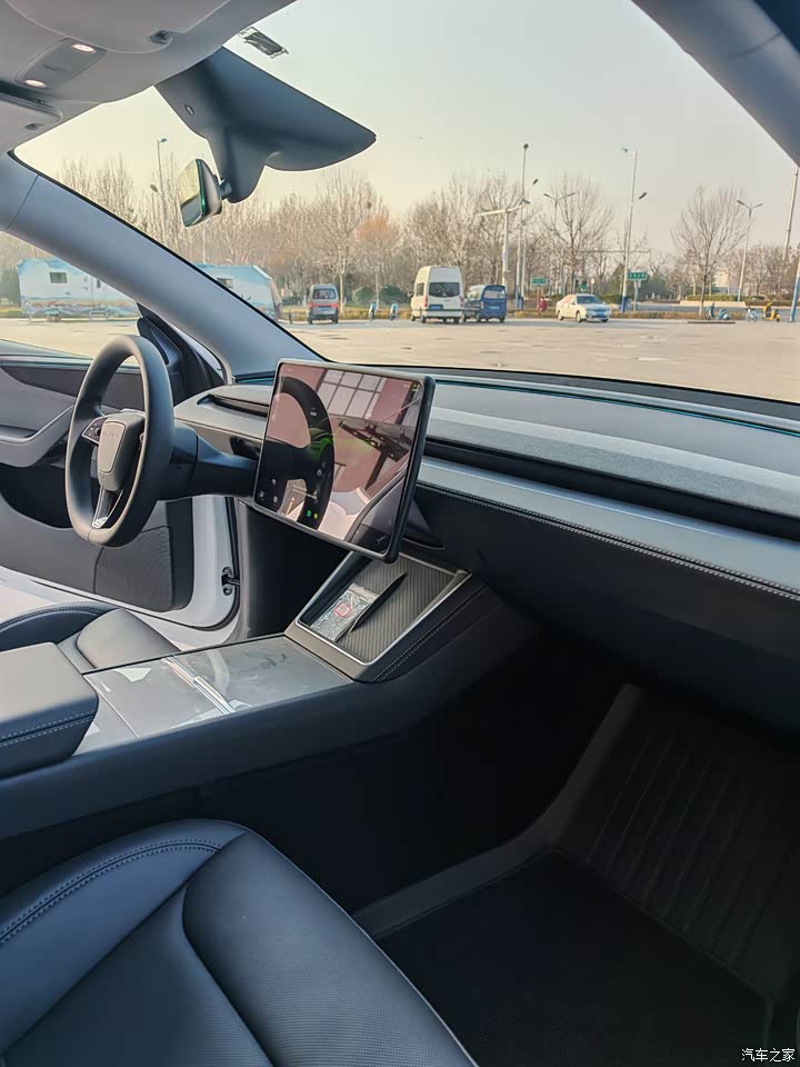 极简风格,一块大屏控制所有功能。刚开始不习惯,用久了反而觉得方便,没有那么多乱七八糟的按钮,车里清清爽爽。新车有点味道,晾了半个月左右就散得差不多了。