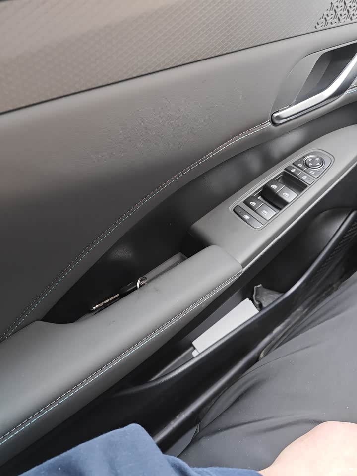 扶手和门板,还有中控,做了少量的皮质软包。大部分地方都是硬塑料,一般般吧。
