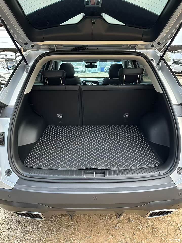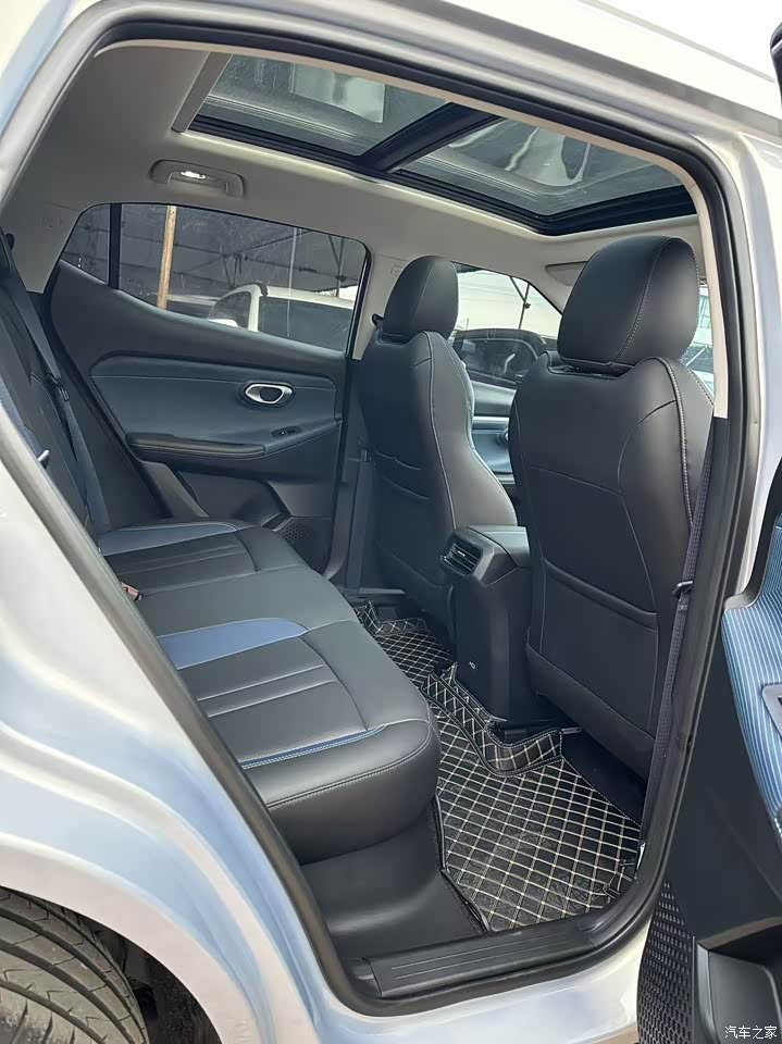 最让我意外的是空间表现,我身高173cm,调整好驾驶位后,头部还有一拳的余量,完全不压抑。后排坐上去试了试,腿部空间也有一拳多,头顶不会顶到车顶,就算是三个成年人坐后排,也不会觉得特别挤。后备箱的常规容积看起来不小,放两个20寸行李箱完全没问题,放倒后排座椅后,空间更是直接翻倍,日常家用或者周末短途自驾,完全够用。
