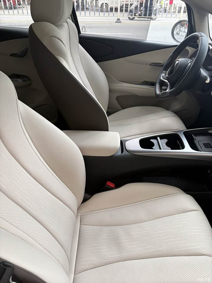 外观非常奈斯,圆润可爱,线条流畅,仔细看真的像一个笑脸的海豚🐬。小小一个ev型的,对新手来说侧方停车真的超级好进,而且因为车型小一点,坐上去视野也感觉很不错。选了米黄色的,非常的简约大气,而且落灰了也不那么明显。