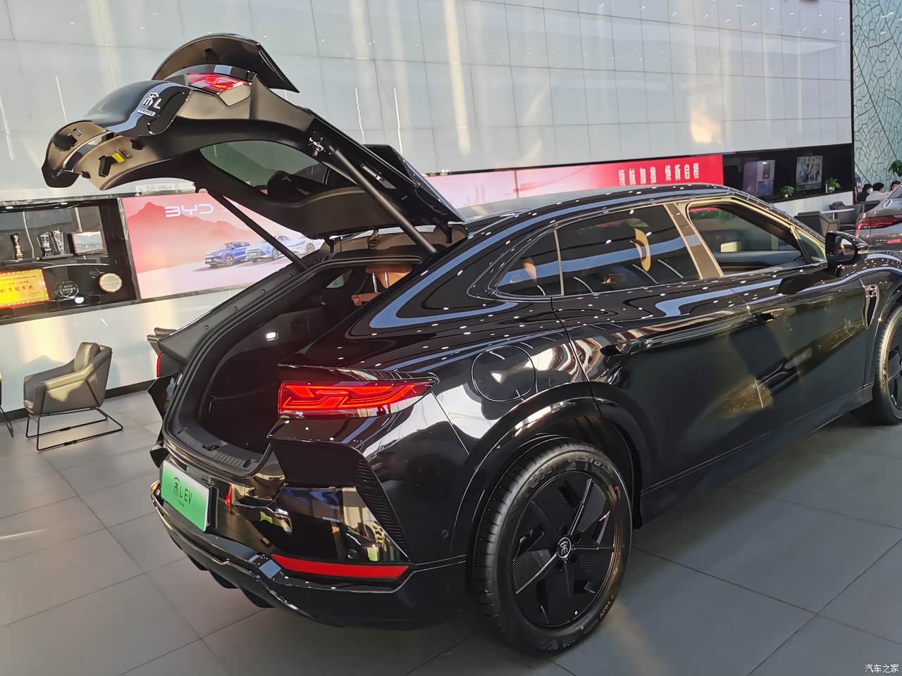 宋Lev是个运动型的suv,空间方面自然是没有其他宋系列车型空间大的,后排坐进去比较压抑。后备箱是值得的夸赞一下,宋lev是目前在售第一款也是唯一一款采用掀背后备箱的。不止是帅,还挺能装货的。