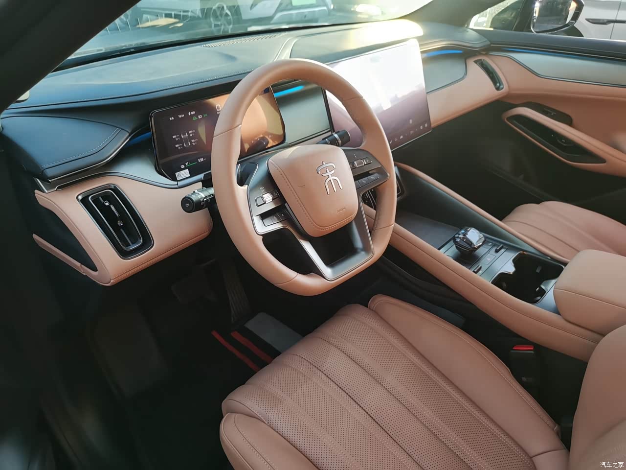 买黑色车还是气质更高,黑外观搭配橙色内饰一眼高级。中控大屏足够大,跟台平板电脑似的,功能丰富流畅度也很nice。