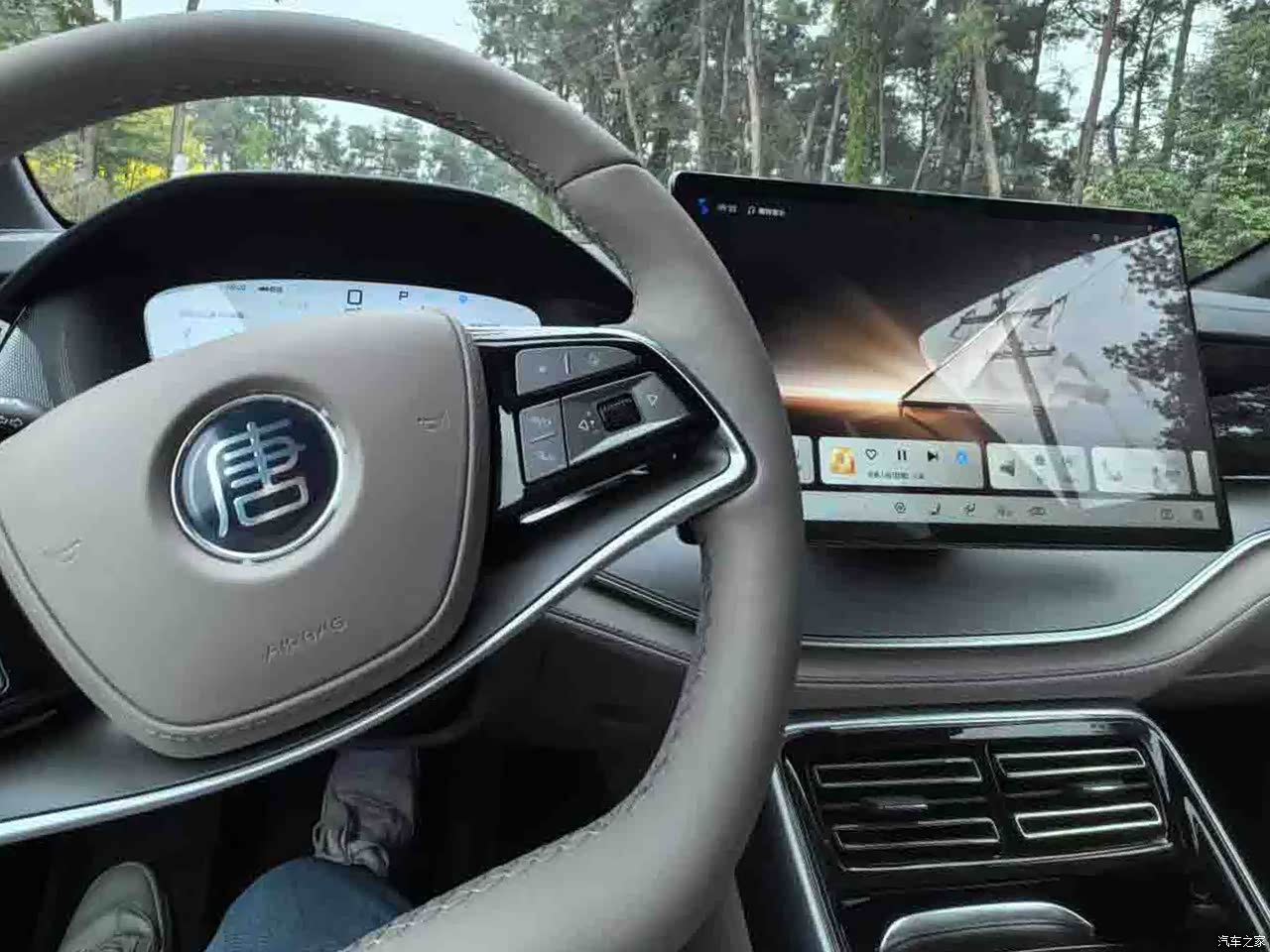 坐进车内,唐DM的内饰给人一种精致的感觉。中控台布局合理,且易于操作,各种功能按钮的位置布置得当,使用起来非常方便实用。座椅舒适度高,长时间驾驶也不会感到疲劳或不适。整体来说这款车子在同级别车型中具有一定的竞争力。
