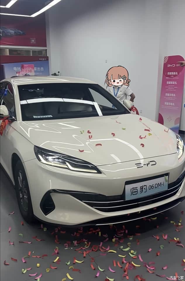 (购车经历) 今年喜提了人生第一台车,对比了很久换了三家店五个销售,最终选择了比亚迪海豹 06dmi 这款车,同时对比了银河 A7,长安启源 A06 等等一系列车型,最终选择了颜值,技术,服务更好的比亚迪海豹 06,更喜欢它卡姿兰版的大灯。启源 A06 其他都挺好的就是方向盘设计我不喜欢。 (驾驶感受) 目前开了十个月安全行驶了两万多公里,驾驶体验很好,燃油经济性也很高,综合下来百公里 4.5L 左右的亏电油耗,满足了日常通勤的需要,比亚迪的天神之眼智驾技术现在也是越来越好啦,经过几次 OTA 升级越来越成熟,每次在高速上几乎都是使用领航辅助功能,安全省心、节油、环保是我选车的关键。 (提车价格) 这款车9.98万的售价 也在我能承受的范围之内,当时作为首批用户优惠了 1000 元,全款买下 9.88 万元外加保险 4500 元,赠送了四次保养,车膜后备箱垫、脚垫,底盘护甲等等一系列小配件。 (最满意的) 作为年轻人的第一台车 外观也特别符合当代年轻人,百公里提速也很快 超车很方便,现在智能化的时代,全系搭载了天神之眼C,未来希望比亚迪越来越好,他家的刀片电池也是我信赖并选择它的原因之一,作为年轻人 第一台车我还是比较推荐海豹06dmi 的,无论是从价格、保养成本、维护成本、使用成本上来说,都算很合适的,我准备将它推荐给我的亲朋好友,未来我自己也会增购比亚迪,希望比亚迪越来越好!