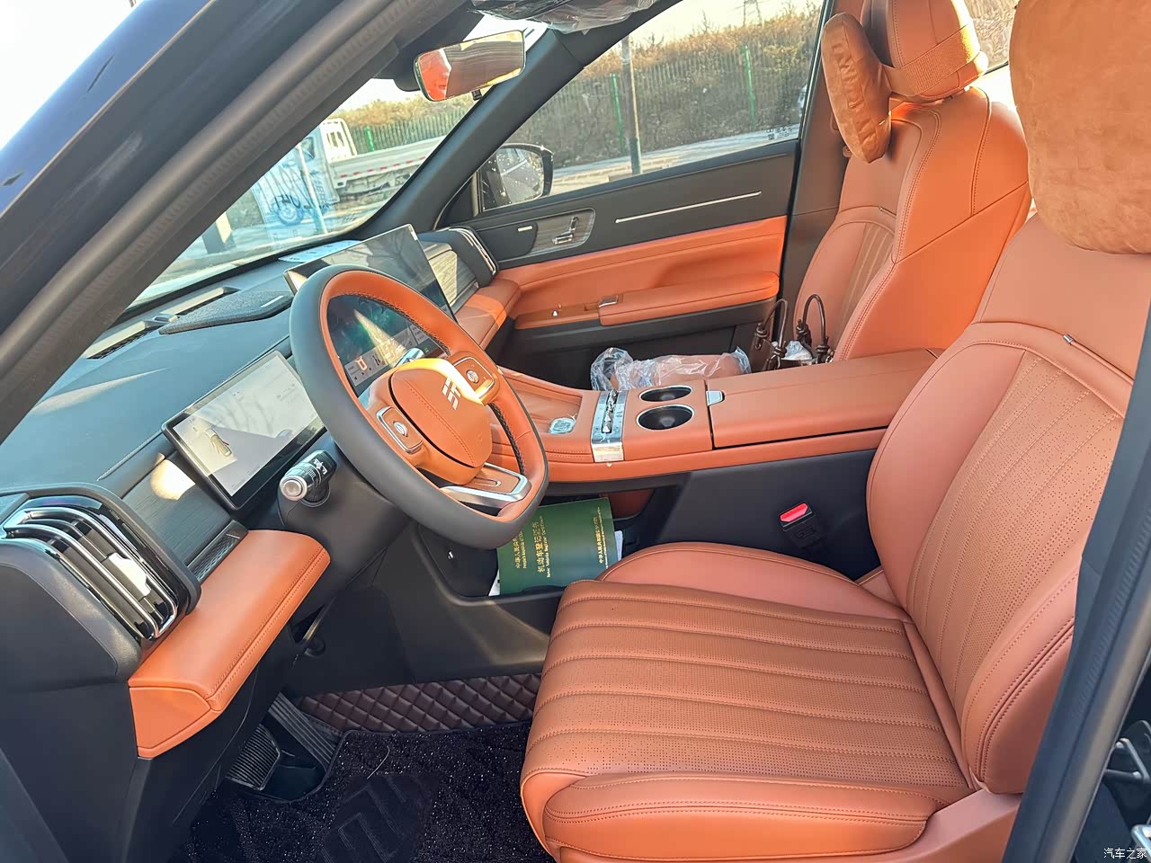 内饰用料扎实,软包覆盖多,搭配银色饰条显得有层次感。15.6英寸旋转大屏很实用,能自动转向主驾或居中,查看信息更方便。