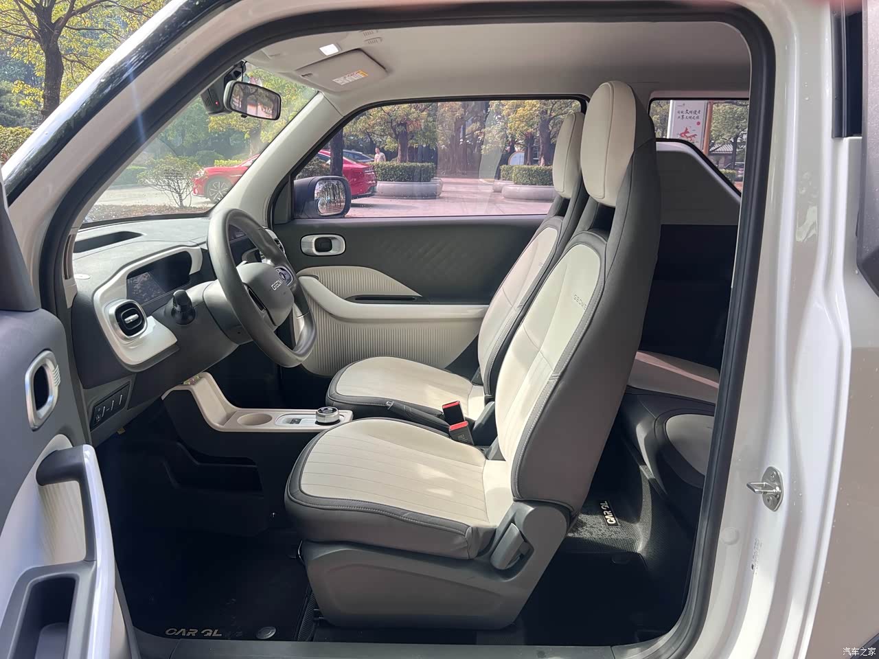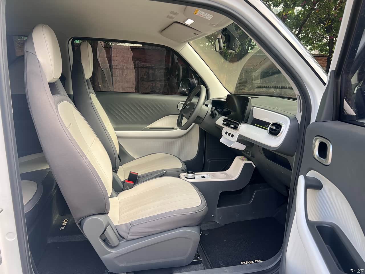 开着是真轻快!方向盘轻得媳妇单手都能打,城区里钻缝贼灵活。就是路面不平的时候颠得厉害,过个减速带得慢腾腾蹭过去。标准车门配这小车显得有点大,系安全带得抻一下胳膊,不算太方便,但习惯了也还好。