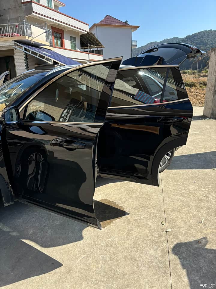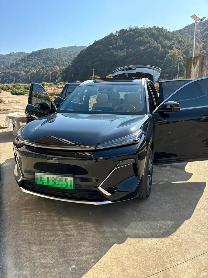 外观线条挺犀利的,就是新能源车型都长这样,辨识度差点,小区里停着,不看车标容易和其他混动SUV搞混。不过黑色款看着干净,回村开土路也耐脏,长辈见了都夸这车子看着敦实。